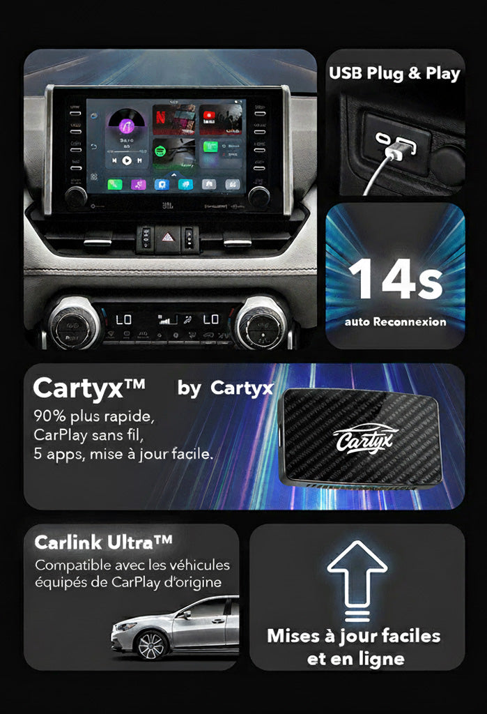 Paramètres → Général → CarPlay → Oublier 'CAR2-XXXX' → Désactiver Bluetooth et Wi-Fi → Les réactiver. Attendez que 'CAR2-XXXX' apparaisse et reconnectez-vous. Assurez-vous que votre téléphone n'est pas sur un autre Wi-Fi.